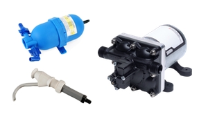 A flojet rv water pump is a good brand that s easy to find and pumps a good amount of water through quickly.