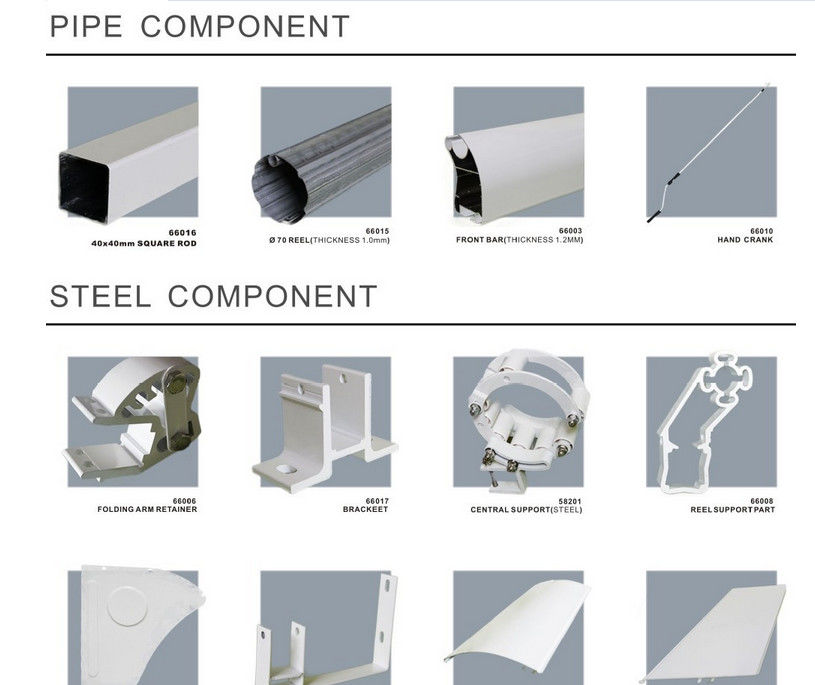 A folding arm awning can be operated either by crank handle or electric motor but electric motors are recommended where the awning has more than two arms greater than 6 metres.